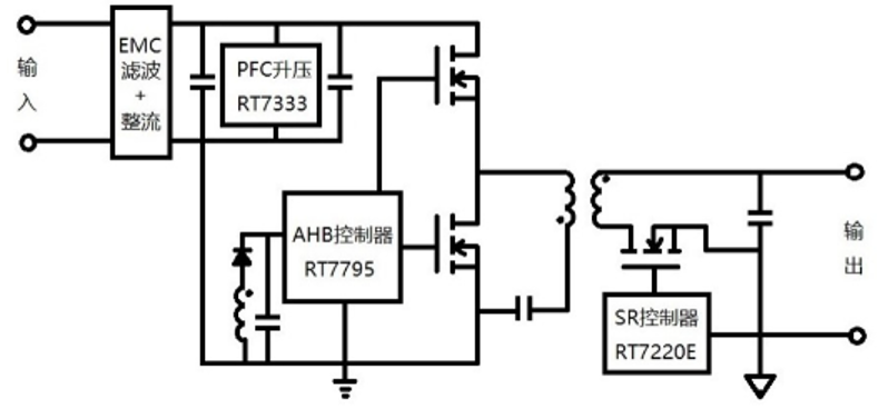 基于立錡Richtek RT7333+RT7795+RT7220E的PFC+AHB架构20V/7A=140W适配器方案
