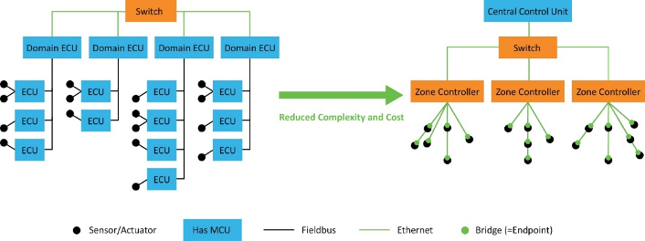为了满足未来汽车的需求,未来汽车的代码行数将很快从目前的一亿行增加到数亿行,汽车行业正在向基于以太网的区域电子/电气(E/E)架构转型。该架构将传感器聚合到从区域网关到主干网和中央计算平台的单一链路中。