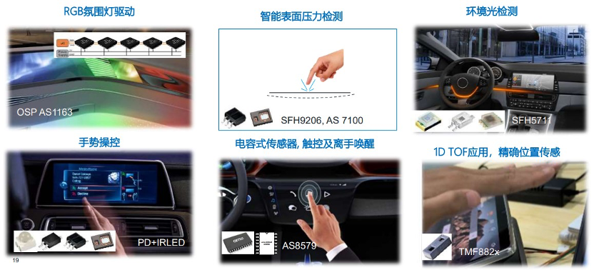 在智能表面的设计中,艾迈斯欧司朗提供多种传感与驱动产品,包括先进的dToF、红外、环境光、电容、光压式传感器以及基于OSP协议的智能驱动器和RGBi模块,这些产品使得汽车可以通过接触式的触摸、压力反馈,或是非接触式的手势/坐姿、悬空/接近/唤醒等检测方式来精准感知驾乘者的需求,使人车交互更智能。