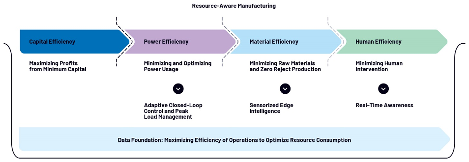 下一代制造业需要更全面地审视资源消耗的各个方面。制造业所需的四大关键资源分别是资金、电力、材料和人力。在资源感知型制造的背景下,未来数字化工厂亟待提升对这些资源的利用效率。在资金效率方面,所有制造领域的资本支出都应注重实现投资回报率(ROI),周期可能为一年、三年或五年不等。未来数字化工厂的关键目标之一,便是以最少的资本支出实现利润最大化,进而获得最高的投资回报率。其次是电力效率,下一代制造业必须以更低的能耗实现更高的产出,达成减少全球碳排放的目标。降低电力消耗的关键举措包括:部署高效电机驱动器,将气动驱动替换为机电驱动,运用自适应闭环控制技术提升制造效率,等等。