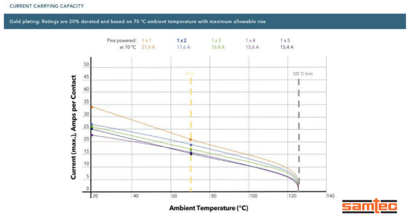 幸运的是,Samtec提供了一系列的信息,包括温度降额图,使您能够做出明智的选择。
