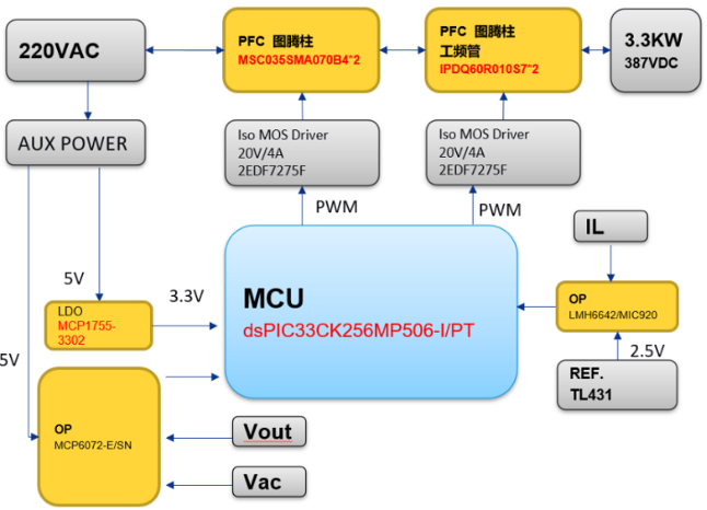 图示3-大联大品佳基于Microchip产品的3.3KW双向图腾柱PFC逆变电源方案的方块图
