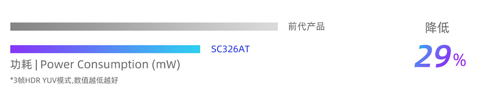 得益于思特威先进的CarSens®-XR工艺技术,采用BSI架构的SC326AT图像传感器实现了优异的低功耗表现。在PixGain HDR® + VS三帧HDR模式YUV格式下,SC326AT的典型功耗低至350mW以下。超低功耗性能,能帮助降低车载摄像头的整机工作发热量,从而提升车载摄像头的稳定性与可靠性。