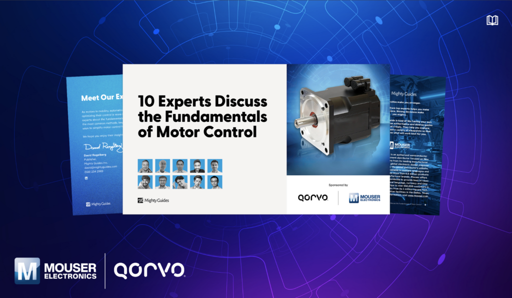 如需阅读此全新电子书,请访问https://resources.mouser.com/manufacturer-ebooks/qorvo-10-experts-discuss-the-fundamentals-of-motor-control-mg。要浏览贸泽完整的电子书库,请访问https://resources.mouser.com/manufacturer-ebooks/。
