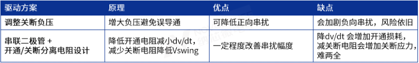如上图常规解决 SiC 器件门极串扰方案所示,这些传统手段虽然“理论可行”,但在高频高压的SiC应用中仍难以同时达到低损耗与安全余量的双重目标。