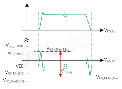 在使用SiC功率器件时,由于其高dv/dt特性,门极常常遭遇正负串扰电压(Vswing)幅度超出门极开启阈值(Vgsth)及负向耐压极限(Vgs_min)的情况。这种串扰容易导致误导通或器件损伤,是高性能驱动设计的一大挑战。