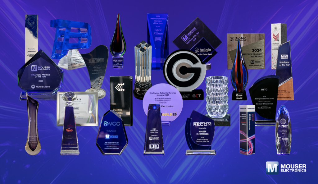 (Mouser Electronics) 很荣幸宣布,凭借其在2024年的卓越表现,荣获制造商合作伙伴颁发的超25项优秀企业大奖,其中包括多项年度代理商 (DOY) 奖。