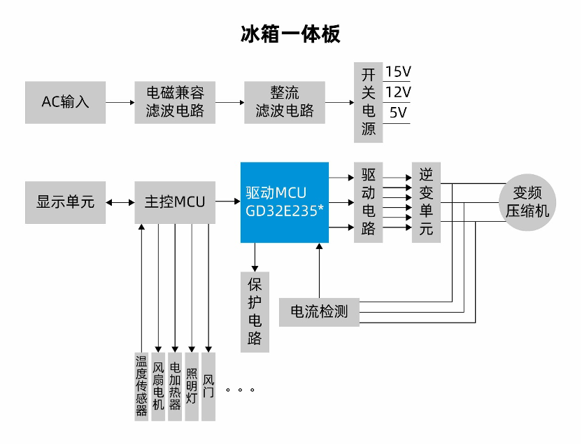 基于GD32E235系列MCU的冰箱一体板应用框图