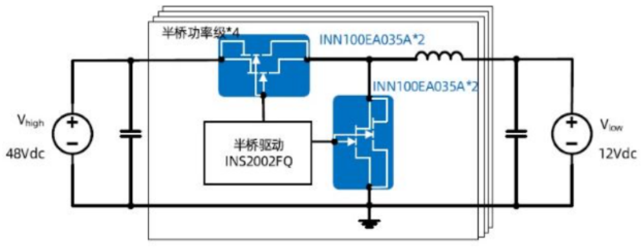 基于InnoGaN INN100EA035A & INS2002FQ设计的48V系统四相2kW降压电源方案