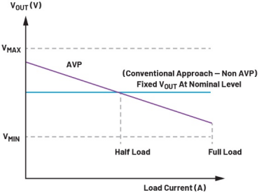 图1.采用AVP的VOUT与采用传统方法(非AVP)的固定标称值VOUT。