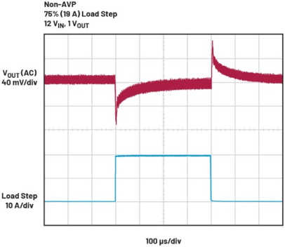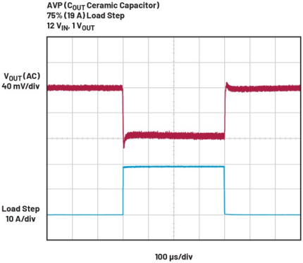 主动电压定位(AVP)或主动下垂技术能够调节电源输出:轻载时维持较高输出电压,重载时维持较低输出电压。实现AVP控制技术的一大好处是可以改善负载瞬态响应并降低输出电容,因为AVP为电源响应负载瞬变提供了更多空间。μModule稳压器是完整、经过测试且合格的封装电源解决方案。对于电信和数据中心应用,μModule稳压器凭借快速负载瞬态响应、极小的电路板占用空间及全陶瓷电容式解决方案而备受青睐。然而,使用传统非AVP控制技术很难满足所有要求。