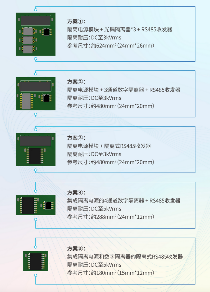 不同隔离通信方案的PCB尺寸对比