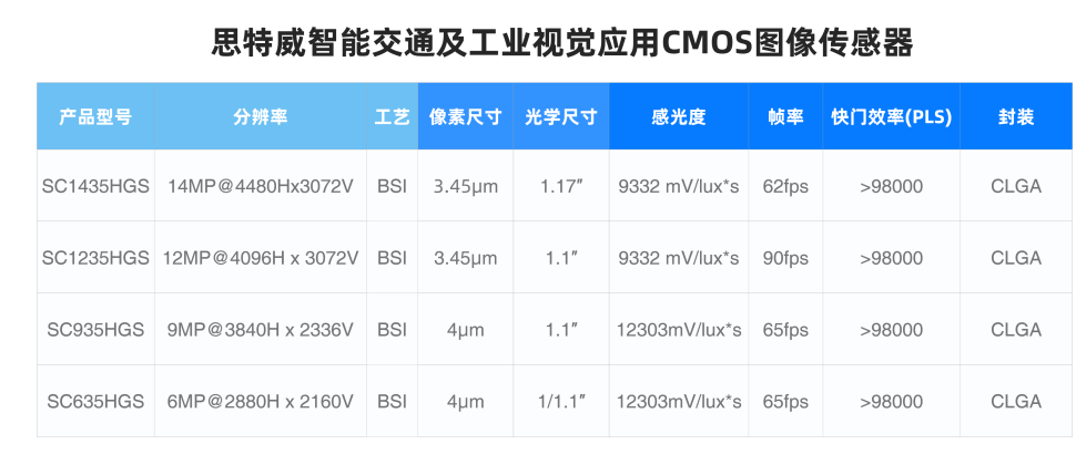除SC1435HGS(14MP)外,思特威还推出了同性能1200万像素版本CMOS图像传感器SC1235HGS,可适用于智能交通ITS及工业检测领域。目前,思特威SmartGS™-2 Plus系列已有6MP-14MP多种不同像素规格的高性能全局快门图像传感器产品,可灵活应用于智能交通(ITS)监控摄像头和工业检测相机等多种类型的终端产品,为客户提供更多选择。