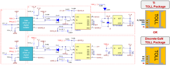 图 1 TI 和分立式 TOLL GaN 封装的原理图