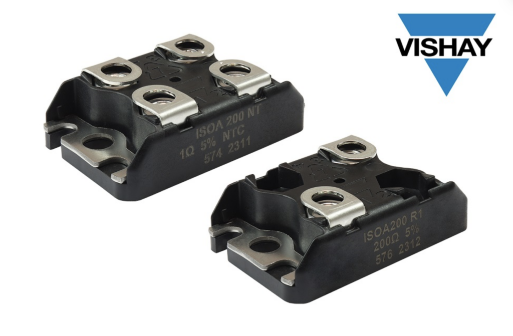 美国 宾夕法尼亚 MALVERN、中国 上海 — 2025年5月8日 — 日前,威世科技Vishay Intertechnology, Inc.(NYSE 股市代号:VSH)宣布,推出一款通过AEC-Q200认证、采用紧凑型薄形SOT-227封装并可安装在散热片上的全新厚膜功率电阻器---ISOA200。Vishay MCB ISOA200可选配用于内部温度监测的NTC热敏电阻和用于更高效安装的预涂相变热接口材料(PC-TIM),在80°C底壳温度下可提供高脉冲处理能力和高达200W的高功率耗散。