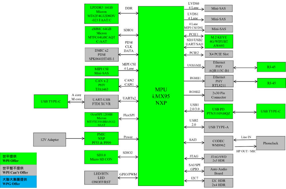 MPU(NXP i.MX95, MX95LPD5EVK-19CM)I/O规格: