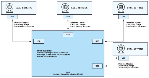 如图5所示,主机是NVIDIA® Jetson Xavier NX,利用Ethernet over USB协议为所有四个ToF模块供电并与之通信。