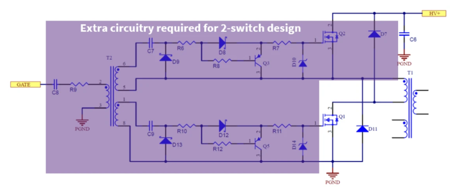 双开关拓扑需要更多组件和额外的 PCB 面积