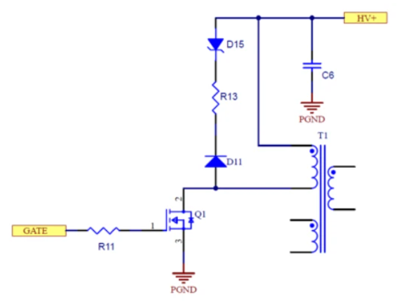 虽然高压 (1500 - 2000 V) 硅 MOSFET 也可用于此系统空间;但缺点是,由于1 - 2 Ω 器件每单位面积 RDS(ON) 较高,造成价格往往比较昂贵,并且损耗较高。取而代之地是,可以利用双开关反激式拓扑来选择较低电压的硅器件。虽然此类器件比较便宜,但双开关拓扑的设计更加复杂,需要更多组件和空间。